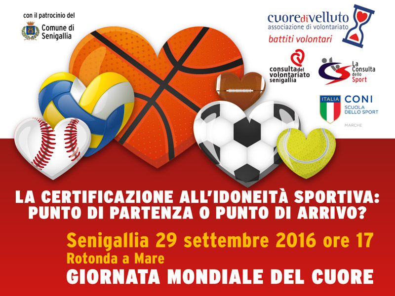 “La certificazione all’idoneità sportiva: punto di partenza o punto di arrivo“. E’ questo il titolo del convegno promosso dall’associazione Cuore di Velluto, dalle consulte comunali del volontariato e dello sport e dal Coni Marche in occasione della Giornata mondiale del Cuore.