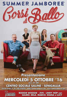 Corsi di ballo 2016/17 del Summer Jamboree - locandinaDopo la presentazione dei corsi di mercoledì 5 ottobre, la prima settimana di lezioni (martedì 11 mercoledì 12 e giovedì 13 ottobre) sarà di orientamento e sarà possibile partecipare a tutte le lezioni disponibili per poter meglio scegliere il corso o i corsi a cui iscriversi. Per iscriversi non è necessario essere in coppia. Il calendario completo delle lezioni verrà comunicato durante la presentazione.