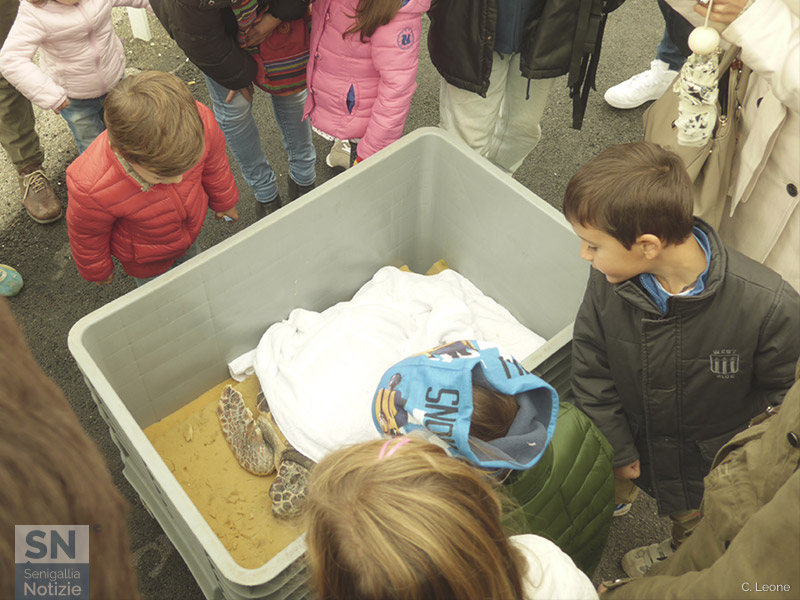 La curiosità di grandi e piccoli per le tartarughe marine al porto di Senigallia
