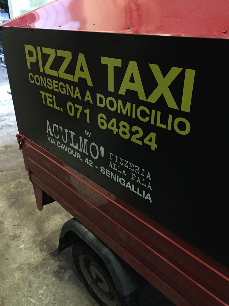 Il Pizza Taxi della pizzeria alla pala Aculmò di Senigallia