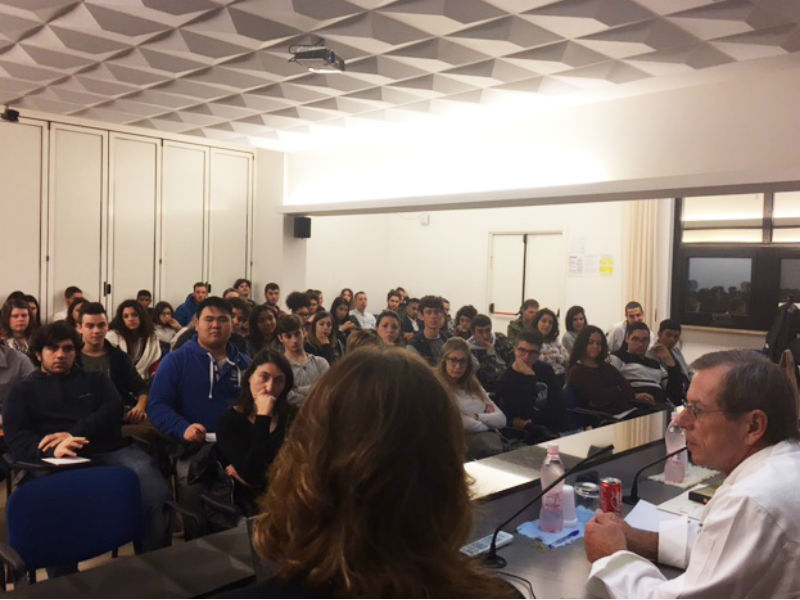 Lo chef ha risposto a tutte le domande dei ragazzi; sono intervenuti anche ex alunni della scuola, portando e raccontando la loro esperienza dell’anno trascorso in America.