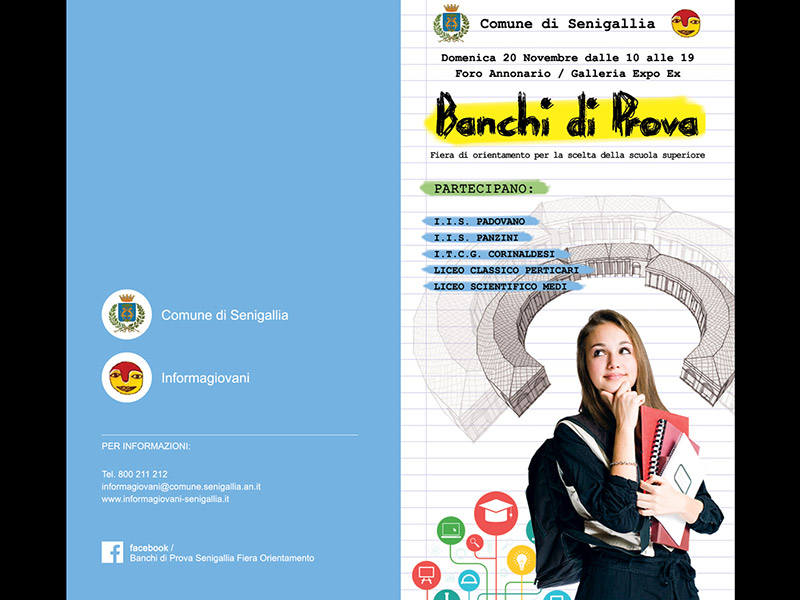 Locandina dell'iniziativa "Banchi di prova" per l'orientamento sulle scuole superiori di Senigallia