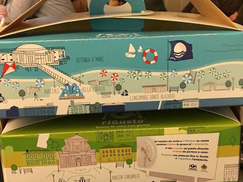 Partner importante per questo progetto la Società Box Marche che ha realizzato il “Food Box”, presentato ai ragazzi: una scatola per il cibo resa preziosa dai disegni della città di Senigallia, perché nulla vada sprecato; tre scatole per riportare a casa dal ristorante ciò che resta del cibo non consumato, non un avanzo, ma cibo “buono”.