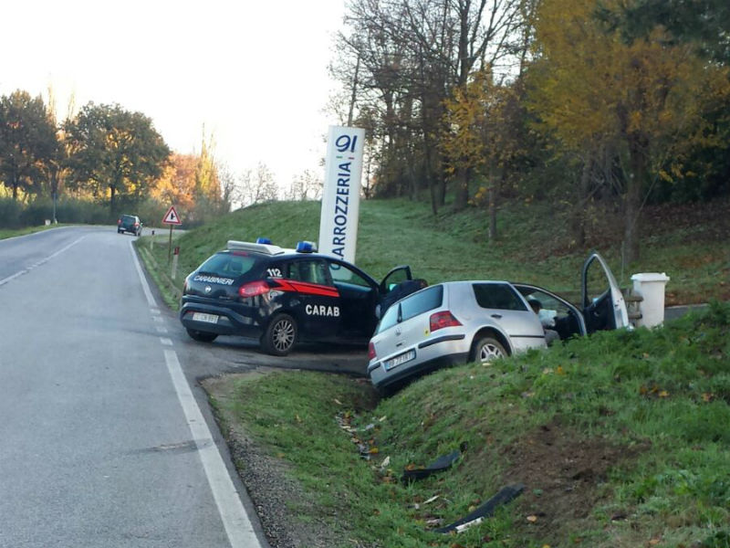 La vettura, una Volkswagen Golf, stazionava addosso a un piccola scarpata a lato della carreggiata della strada Arceviese. I militari hanno trovato al volante un uomo, F. E. F. C. le sue iniziali, nei confronti del quale si è proceduto ad eseguire il test alcolemico.