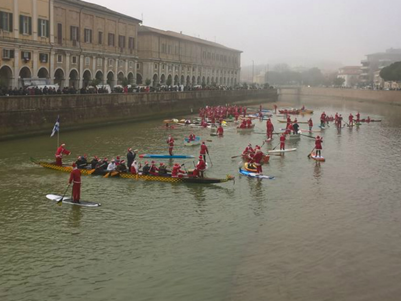 Nella mattinata dell’11 dicembre si è rinnovato l’oramai tradizionale arrivo dei ‘Babbi Natale’ in Sup. Il nutrito gruppo si è ritrovato nei pressi dei Bagni Nella n. 57 e da lì, tutti vestiti dal buon ‘San Nicola’ e armati di pagaia e tavola, hanno risalito la costa, imboccato il porto canale e sono risaliti fino al Corso 2 Giugno dove un nutrito e divertito pubblico li ha acclamati al loro arrivo.