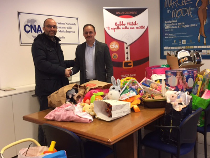 “Ringrazio le persone – dichiara il responsabile sindacale CNA Senigallia Giacomo Mugianesi (a destra nella FOTO)- che hanno contribuito all’iniziativa, dando così modo alla Caritas di distribuire giochi ai bambini e alle famiglie che non possono permettersi un regalo per il natale“.