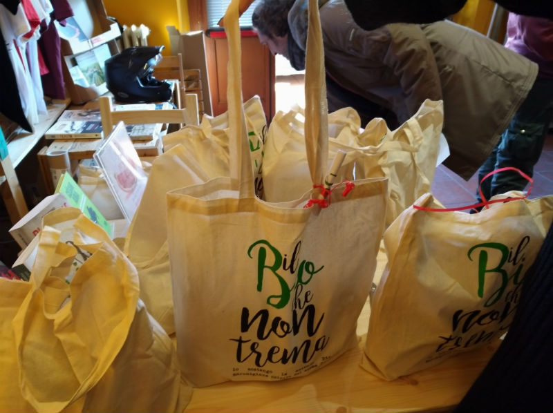 Quest’anno c’è un’importante novità: al posto dei tradizionali cestini di Natale, nel nostro stand troverete delle bellissime shopper griffate “Il Bio che non trema” che potrete riempire con i prodotti del Mercato per un regalo fatto con intelligenza e consapevolezza. Il “Bio che non trema” è infatti una campagna di solidarietà che da oltre tre mesi sta sostenendo attivamente una comunità dei Sibillini gravemente sconvolta dal terremoto. Con i fondi fino ad ora raccolti sono stati portati, in località Monte San Martino, ben quattro moduli abitativi con relativo arredamento ed allacci ai servizi. Col vostro aiuto potremo continuare a supportare questa piccola ma importante comunità.