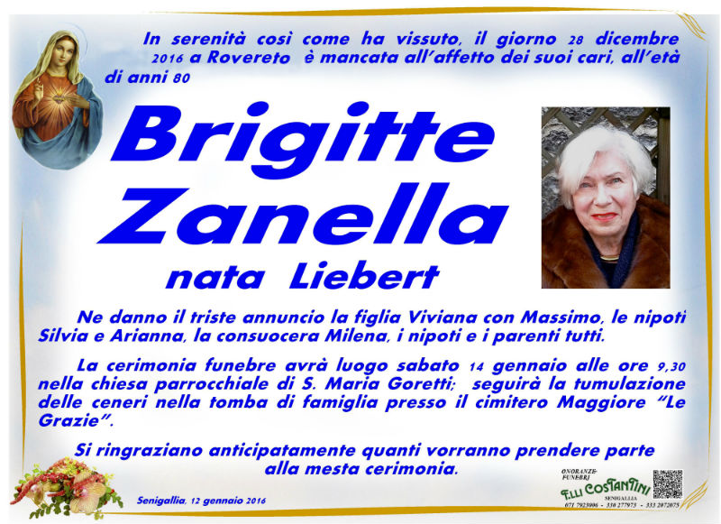 E’ morta a Rovereto Brigitte Zanella, a Senigallia i funerali