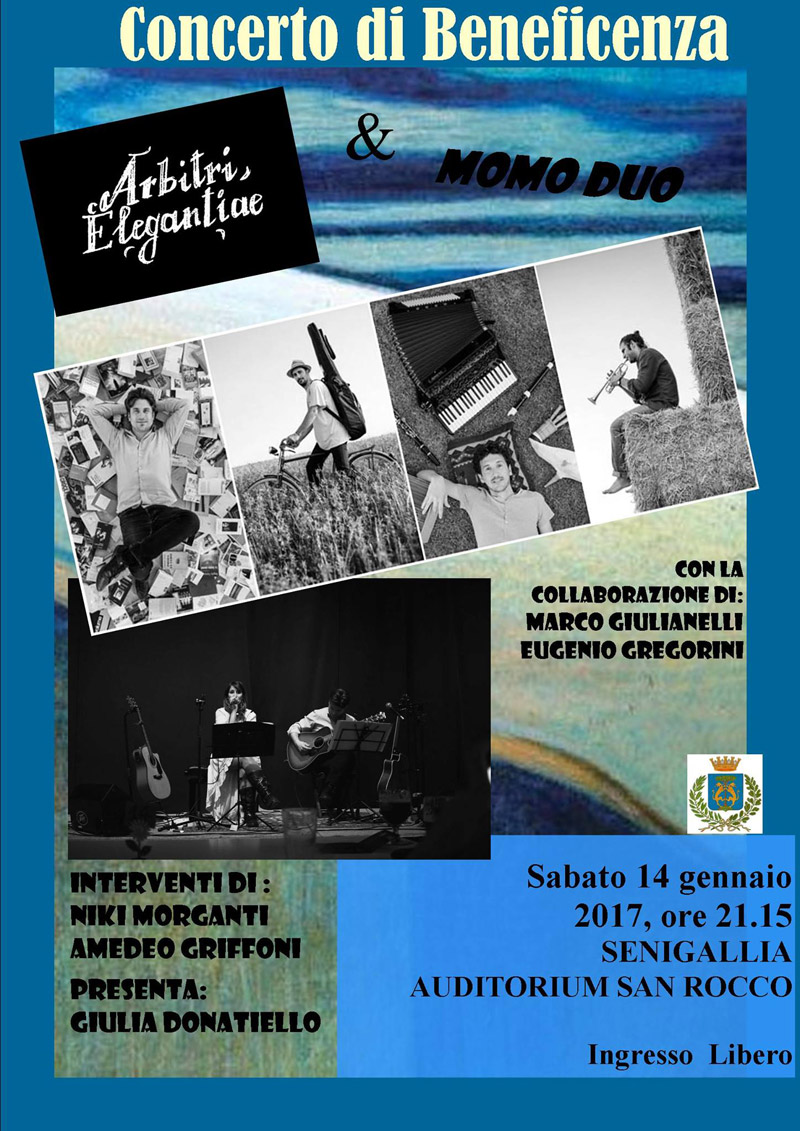 La locandina dell'evento di solidarietà al San Rocco di Senigallia per le popolazioni colpite dal terremoto