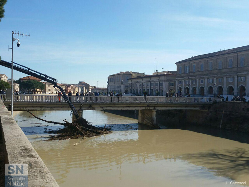che si erano accumulati soprattutto addosso alla prima struttura sul fiume Misa, quella che collega la zona stadio e via Rossini con via Cavallotti e via Portici Ercolani.