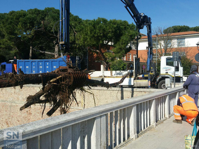 Lavori di pulizia del letto del fiume Misa a Senigallia, sotto i piloni del ponte Garibaldi
