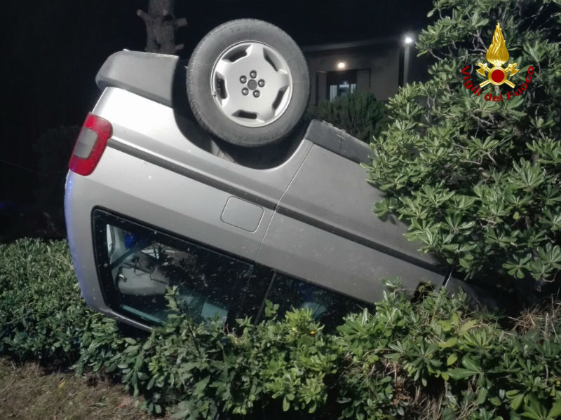 Incidente nella serata di domenica 19 a Senigallia: auto cappottata