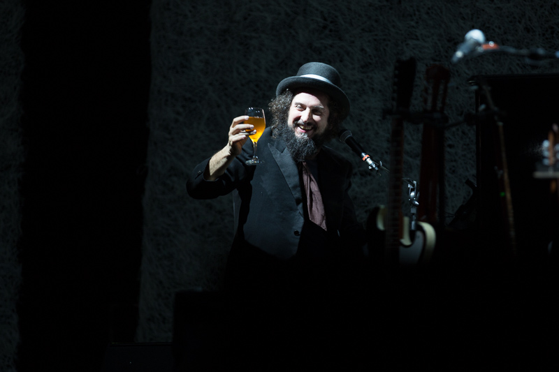 Già a partire dall’invito, rivolto al pubblico a inizio concerto, a restare nel buio insieme agli artisti, rinunciando ad accendere gli schermi degli smartphone, si è intuito chiaramente che stava iniziando uno spettacolo “notturno”, fatti di poche luci e molte ombre: quelle che per le seguenti due ore e mezza hanno avvolto Vinicio Capossela e i suoi musicisti sul palco del Teatro delle Muse di Ancona, nella serata del 5 aprile.
