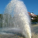 La fontana d'acqua creatasi con la rottura di una tubatura al Ciarnin di Senigallia