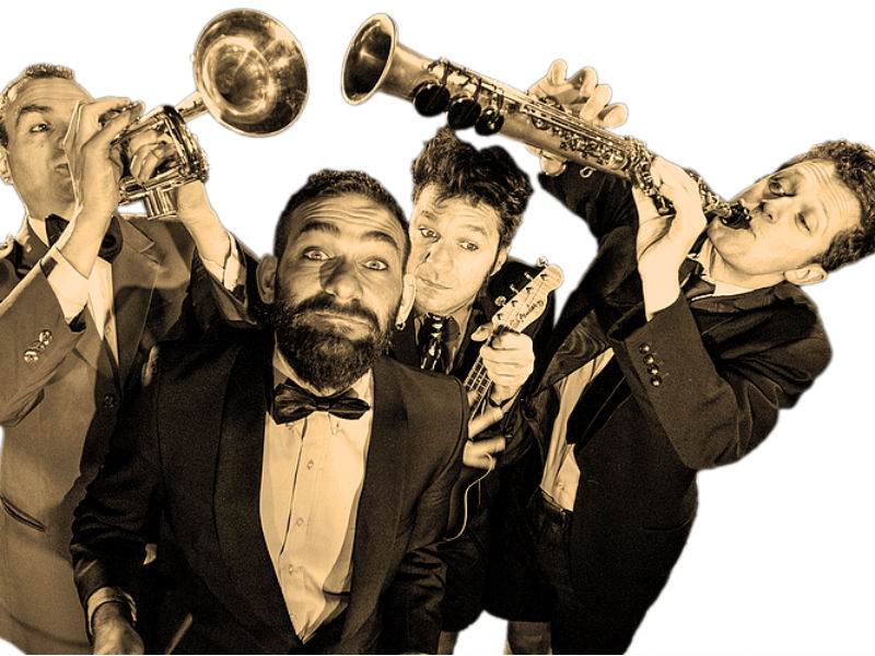 E’ in questo luogo non meglio definito che, in un tempo anch’esso indefinito, si ritrovarono casualmente cinque artisti di prim’ordine: un sax, una tromba, una fisarmonica, un ukulele (quello simile ad una chitarra molto piccola… sì esatto, proprio quello lì) ed una batteria.