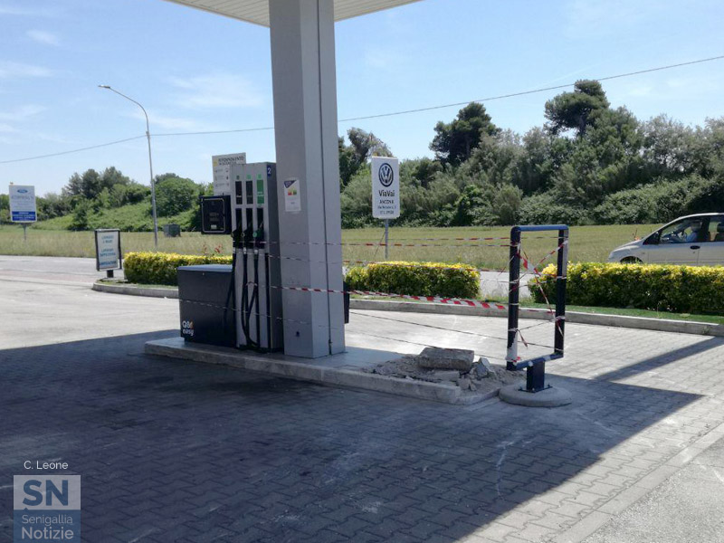 La scena del furto al distributore Q8 al Cesano di Senigallia