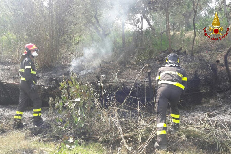 I vigili del fuoco hanno spento le fiamme che si erano estese anche a delle rotoballe di fieno (FOTO a destra, Ndr) e ad alcuni ulivi, ma per fortuna non si registrano né feriti né intossicati, né danni agli animali.