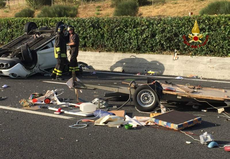 Violento incidente quello avvenuto nella prima mattinata del 4 agosto sull’autostrada A14. Erano circa le 08.00, quando per cause ancora da chiarire, un’auto trainante una roulotte è stata urtata da un furgone mentre percorrevano la corsia nord. E’ successo all’altezza del km 191, zona Cesano, tra i caselli di Senigallia e Marotta.