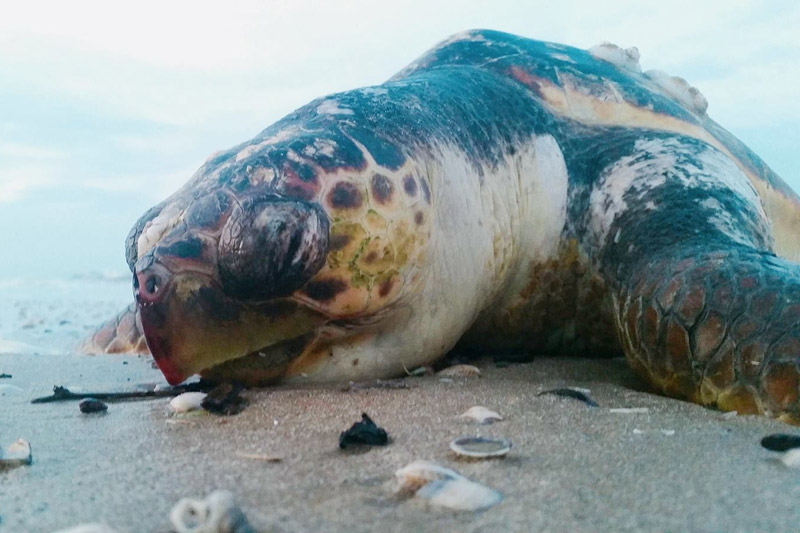 Il mare rilascia sulla spiaggia una carcassa di Caretta Caretta di ben 75 chili, interviene la Guardia Costiera