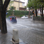 La pioggia sta defluendo infatti con grandissima difficoltà nei tombini, con gli operai del Comune che sono al lavoro per stapparli, e sta invadendo le sedi stradali, creando disagi alla circolazione e causando apprensione nei residenti, preoccupati anche per i locali che si trovano nei seminterrati.