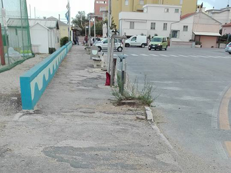 Eliminate le vecchie tamerici che saranno sostituite da piante più resistenti, così come le panchine e il marciapiedi, da rifare