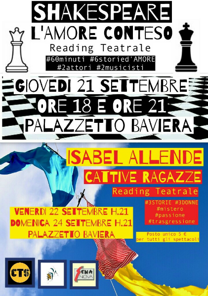Reading teatrali al palazzetto Baviera dal 21 al 24 settembre 2017