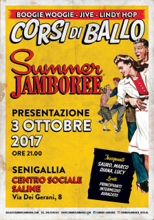 Prendono il via i corsi di ballo del Summer Jamboree stagione 2017_2018! La serata di presentazione (ingresso libero) si svolgerà martedì 3 ottobre alle ore 21 presso il Centro Sociale Saline di Senigallia (Via dei Gerani, 8) dove verranno presentati anche i workshop di ballo programmati alla Rotonda a mare all’interno della prossima edizione del Winter Jamboree.