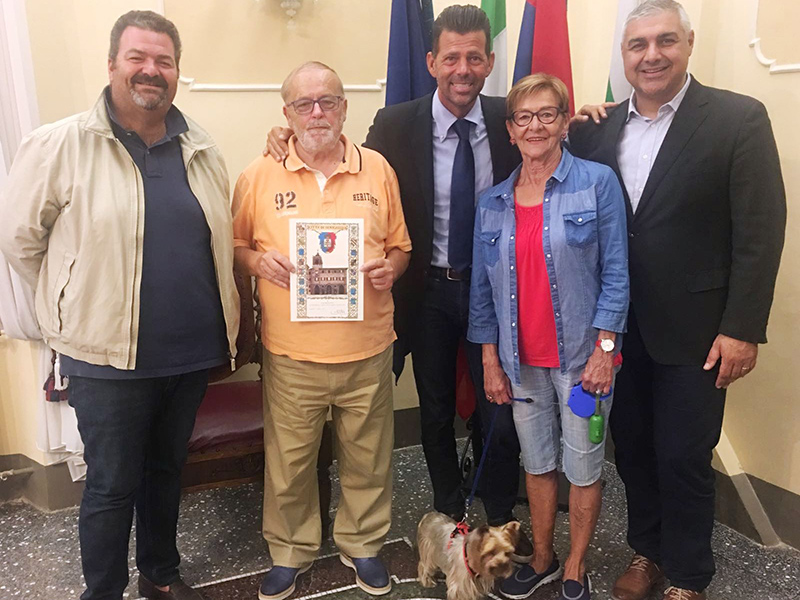 Ai coniugi Bellucci il sindaco ha consegnato una pergamena per la fedeltà e l’amicizia dimostrata nei confronti di Senigallia.