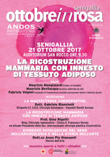 Sabato 21 ottobre, a Senigallia, nell’ambito di “Ottobreinrosa”, presso l’Auditorium San Rocco, con inizio alle ore 9.30, l’A.N.D.O.S. (Associazione Nazionale Donne Operate al Seno) – Comitato di Senigallia, in collaborazione con il Comune di Senigallia, ha organizzato un incontro, aperto a tutta la cittadinanza, sul tema “La ricostruzione mammaria con innesto di tessuto adiposo”.