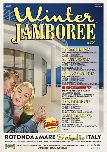 Nello scenario favoloso della Rotonda a mare di Senigallia, 6 appuntamenti evento da ottobre 2017 a febbraio 2018 tra cui il New Year’s Eve Party (il 31 dicembre) – a cui si aggiungeranno le date dello Spring Jamboree in primavera –, dedicate alla musica, alla cultura e ai balli dell’America anni ’30, ’40 e ’50, organizzate dal Summer Jamboree e promosse dal Comune di Senigallia.