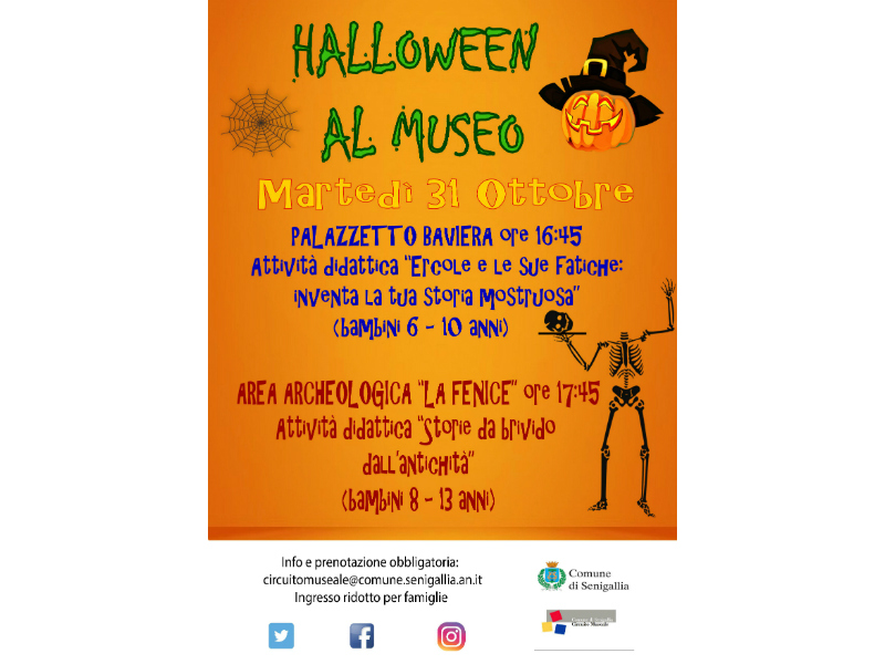 A Senigallia Halloween si festeggia al museo. Martedì 31 ottobre Palazzetto Baviera e l’area archeologica La Fenice ospiteranno delle attività didattiche a tema riservate rispettivamente ai bambini dai 6 ai 10 anni e dagli 8 ai 13 anni.