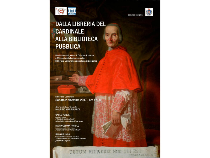 Tutto pronto alla Biblioteca Comunale Antonelliana per la celebrazione del 250° anniversario della sua fondazione. Sabato 2 dicembre, alle ore 17, incontro pubblico dal titolo “Dalla libreria del Cardinale alla Biblioteca pubblica” dedicato alla figura del Cardinale Nicola Antonelli che con il lascito testamentario della sua ricca libreria alla città di Senigallia, metteva di fatto le fondamenta della prima biblioteca pubblica cittadina.