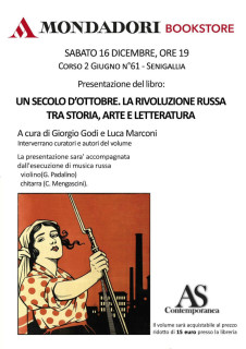 Appuntamento oggi pomeriggio, sabato 16 dicembre (ore 19.00) alla Libreria Mondadori, in Corso Due Giugno 61, per la presentazione del volume “Un secolo d’ottobre”. La rivoluzionerussa tra storia, arte e letteratura (Ed. Aras, 2017) a cura di Giorgio Godi e Luca Marconi, realizzato dall’Associazione di Storia Contemporanea.