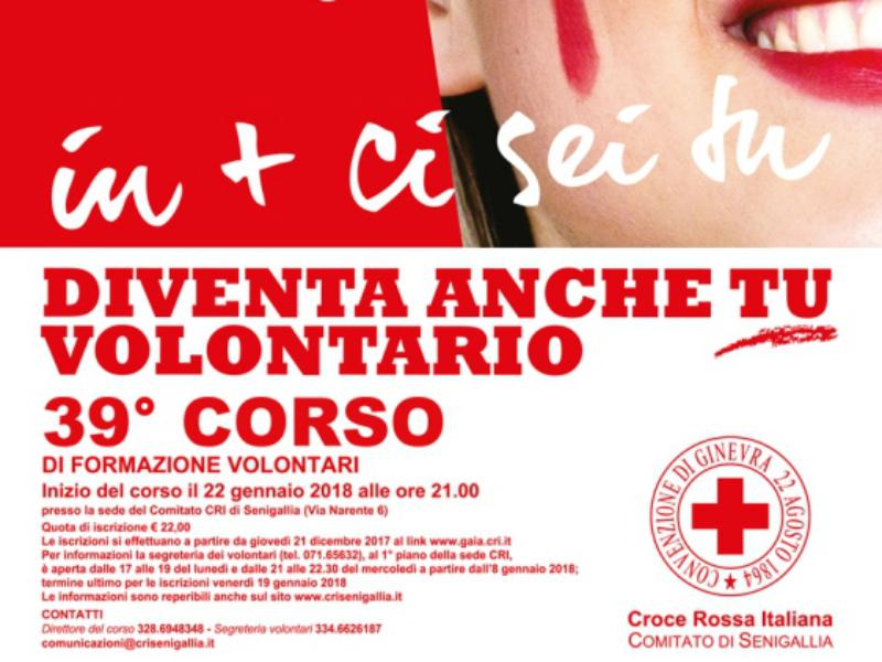 Lunedì 22 gennaio prenderà il via il 39° corso di formazione per volontari della Croce Rossa Italiana, organizzato dal Comitato di Senigallia.