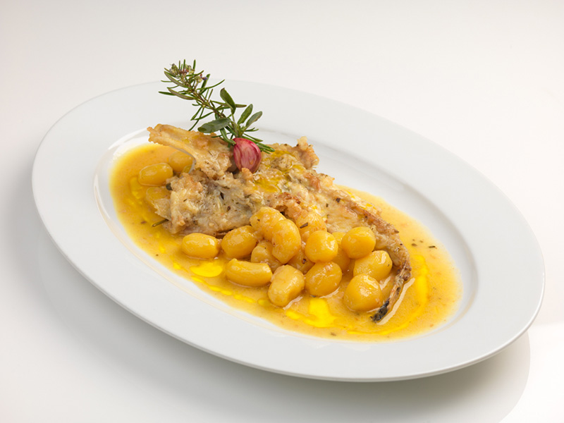La ricetta che pubblichiamo è proposta dallo chef Adino Messi, il quale ci presenta un secondo piatto di pesce dal sapore inconfondibile, arricchito dagli aromi sapientemente utilizzati e ingentilito dalle patate novelle.