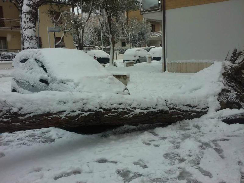 albero schiantato dal peso della neve