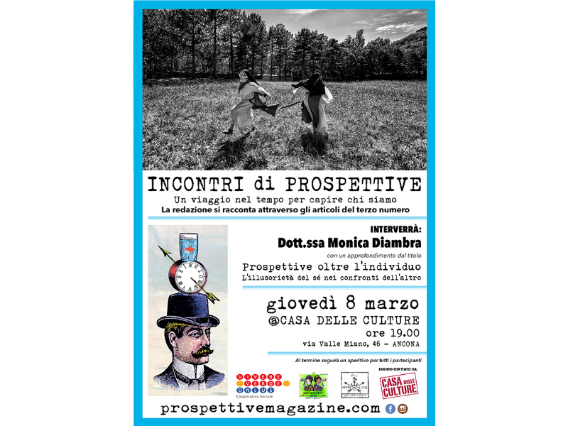 L’appuntamento è per giovedì 8 marzo alle 19.00 con tutti gli autori della rivista che racconteranno la genesi e i retroscena degli articoli redatti e con la Dott.ssa Monica Diambra che proporrà un approfondimento tematico dal titolo “Prospettive oltre l’individuo. L’illusorietà del sé nei confronti dell’altro“.