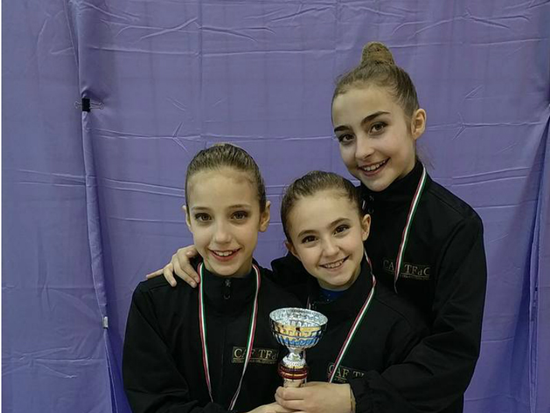 Per la categoria a squadre, fascia argento per la squadra composta da Carrieri Siria, Avramyshin Natali, Vernelli Giulia, Carraro Nicole e Tarsi Aurora e fascia bronzo per la squadra composta da Ferretti Rebecca, Runco Federica, Fiorini Gaia, Tiberi Viola, Breccia Sophie e Zacchei Gaia.