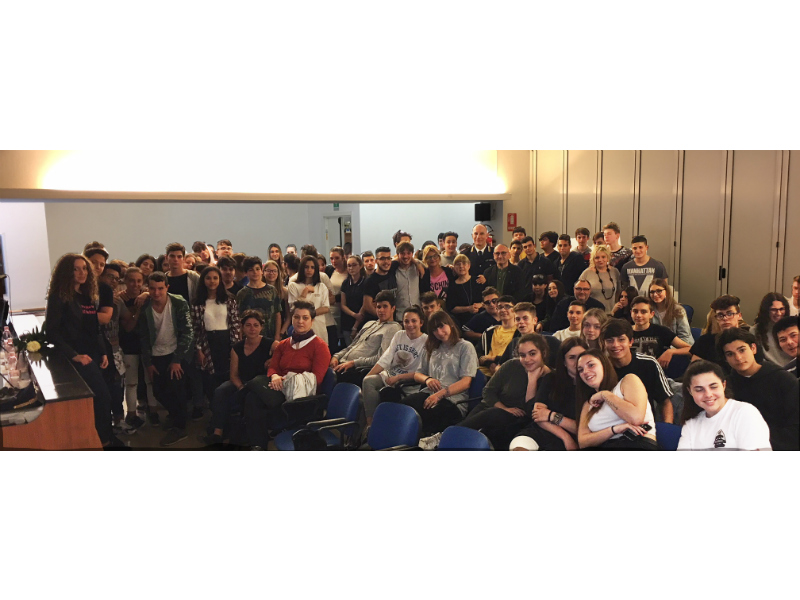 Venerdì 24 maggio, una mattinata davvero importante per gli alunni del Panzini, un incontro “totalizzante”; la Sala Incontri dell’istituto era super gremita di alunni e docenti cha dall’inizio alla fine sono stati attentissimi, concentrati ed emozionatissimi; si era creata una atmosfera particolare e si è potuto vedere tanti alunni delle classi prime e seconde, solitamente vivaci, non muoversi dalla sedia, in silenzio assoluto, rispettosi e con la voglia di comprendere e condividere.