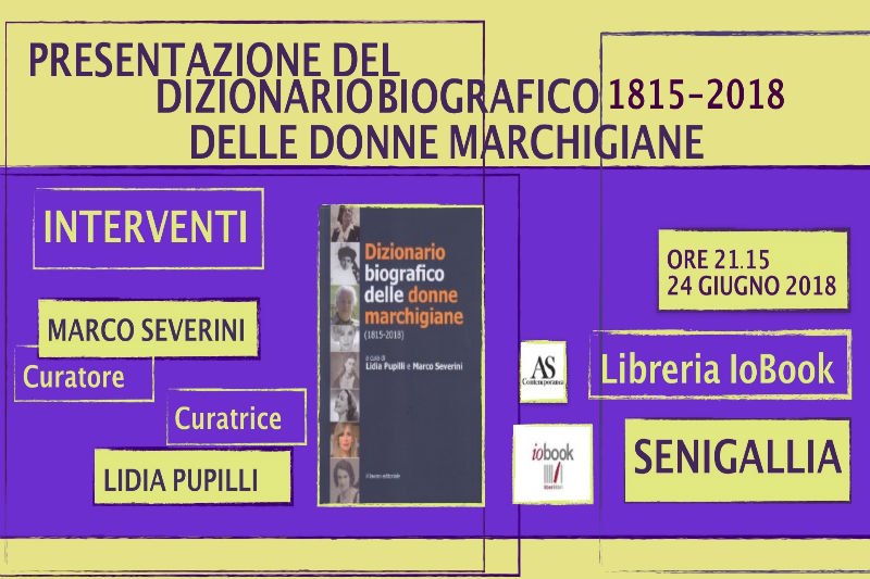 Dopo trentatré presentazioni in giro per le Marche e la penisola, il “Dizionario biografico delle donne marchigiane 1815-2018” (a cura di Lidia Pupilli e Marco Severini, Ed. il lavoro editoriale, 2018, pp. 346) torna a Senigallia con un’edizione aggiornata, riveduta e ampliata da dove era partito lo scorso 8 marzo.