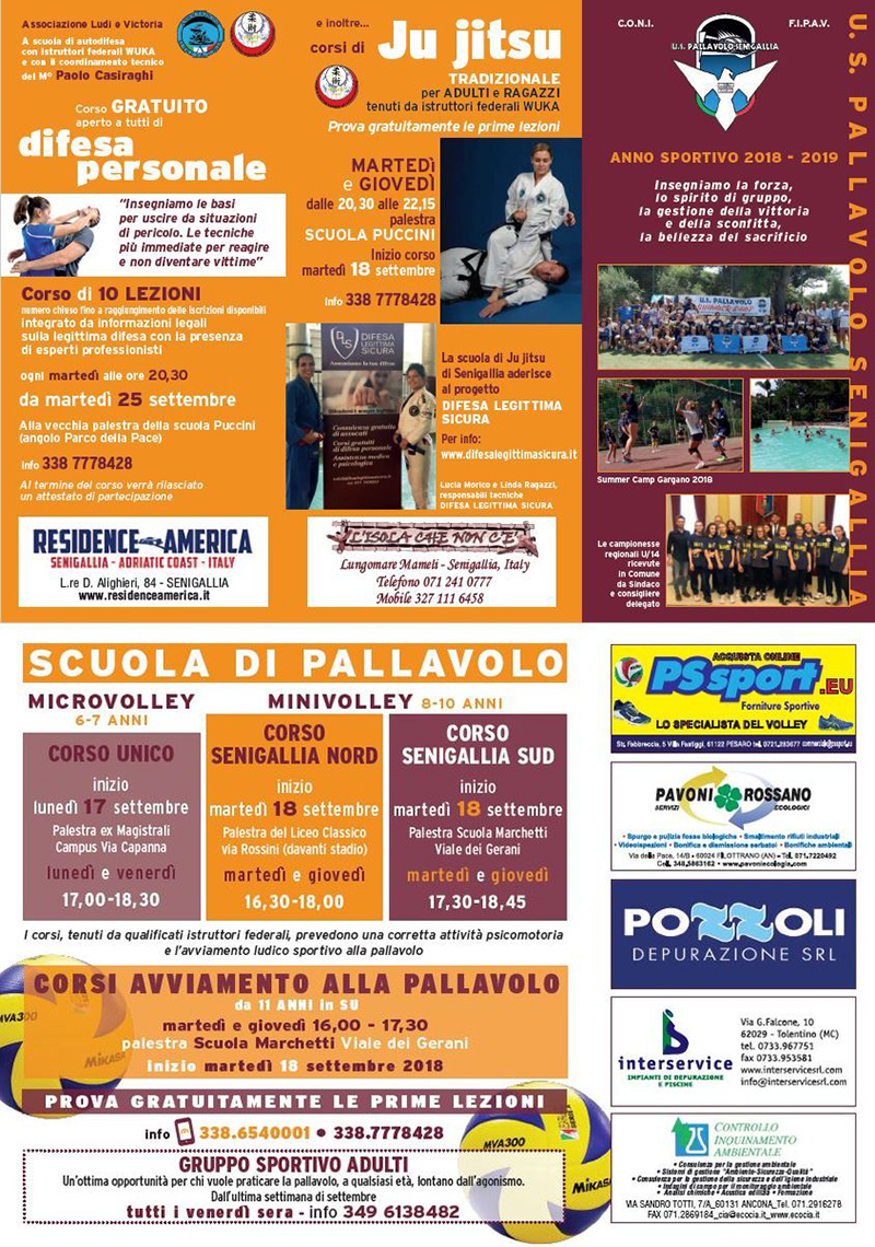 Corsi pallavolo, ju jitsu e difesa personale 2018/19 di US Pallavolo Senigallia e Ludi e Victoria