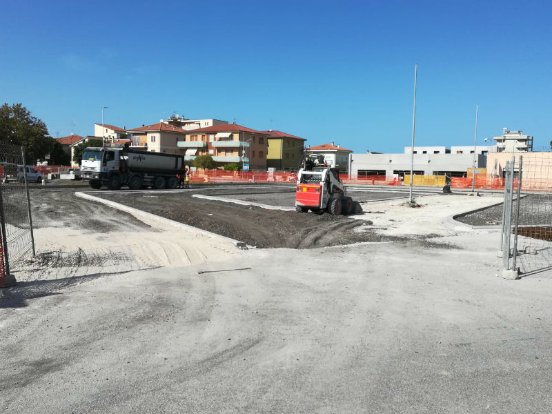 Proseguono i lavori nella zona della Cesanella, dove è giunta in fase di ultimazione la realizzazione del parcheggio su piazzale Michelangelo.