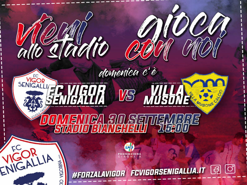 Debutto interno al Bianchelli per l’FC Vigor Senigallia, che nella seconda giornata di Promozione, domenica 30 settembre, ospita alle ore 15 il Villa Musone.