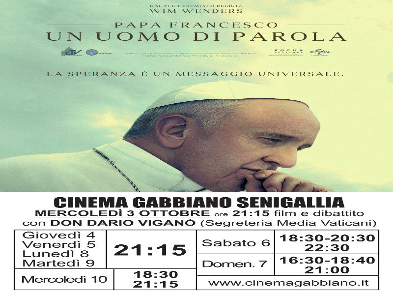 Il cinema Gabbiano di Senigallia parte per primo e anticipa l’uscita nazionale di “Papa Francesco – un uomo di parola” con un’anteprima mercoledì 3 ottobre alle ore 21,15.