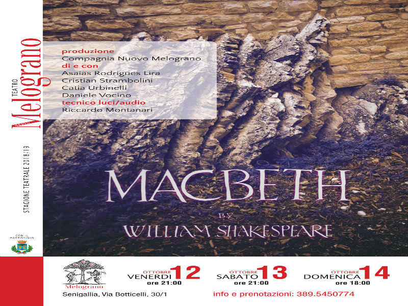 La nuova stagione teatrale del Nuovo Melograno di Senigallia è alle porte. Il primo spettacolo della stagione 2018-2019 è “Macbeth” di William Shakespeare, un’opera leggendaria rivisitata dalla compagnia e proposta in una versione metropolitana.