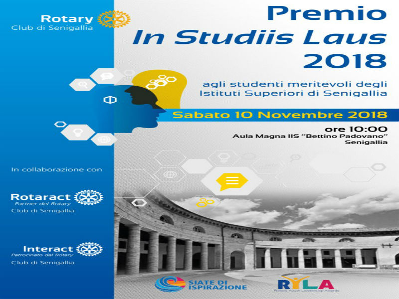 Sabato 10 novembre alle ore 10 a Senigallia, presso l’Aula Magna dell’Istituto di Istruzione Superiore Bettino Padovano, si terrà la XXIX edizione del premio “In Studiis Laus” organizzato dal locale Rotary Club in collaborazione con i ragazzi del Rotaract e dell‘Interact.