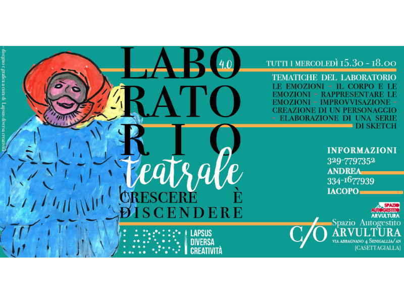 Mercoledì 16 Gennaio 2018 prenderà avvio, presso lo Spazio Autogestito Arvultura, la IV Edizione del “Laboratorio Stabile di Teatro Sociale” promossa dall’Associazione Lapsus.
