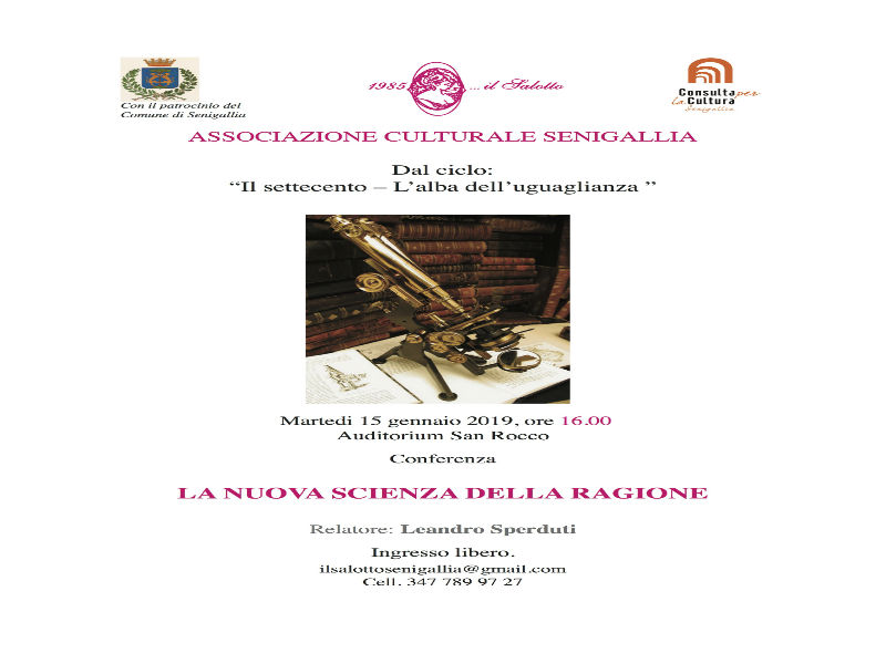 “La nuova scienza della ragione”, incontro all’Auditorium San Rocco di Senigallia