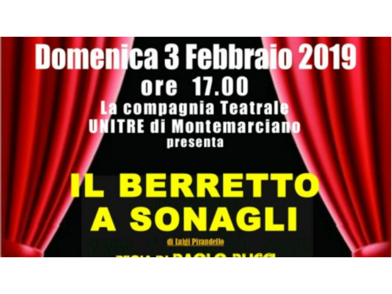 L’UNITRE di Montemarciano, in collaborazione con Il Centro Sociale “Adriatico”, la Biblioteca Comunale “Luca Orciari”e la Compagnia Teatrale “La Sciabica” di Marzocca, presenta la commedia di Luigi Pirandello “Il berretto a sonagli”, con cui La Compagnia Teatrale dell’UNITRE di Montemarciano debutterà nei prossimi 2 week-end: