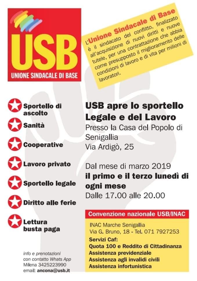 Apre a Senigallia lo sportello USB di assistenza gratuita legale - lavorativa
